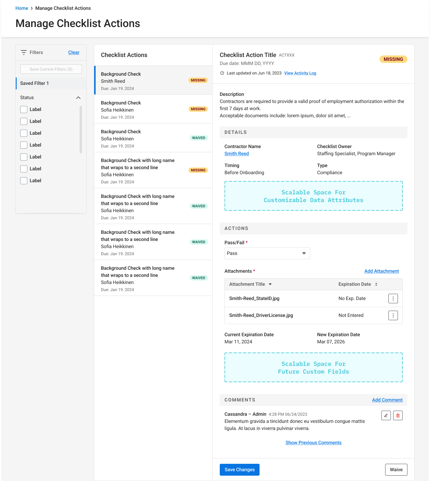 In prior experience, end users can simply complete checklist items through a modal, by entering dates and uploading documents. Since new customization features being introduced led to higher complexity, increased cognitive load, and lower user productivity. Therefore, the product needed a new end-user experience to enable efficiency and scalability.