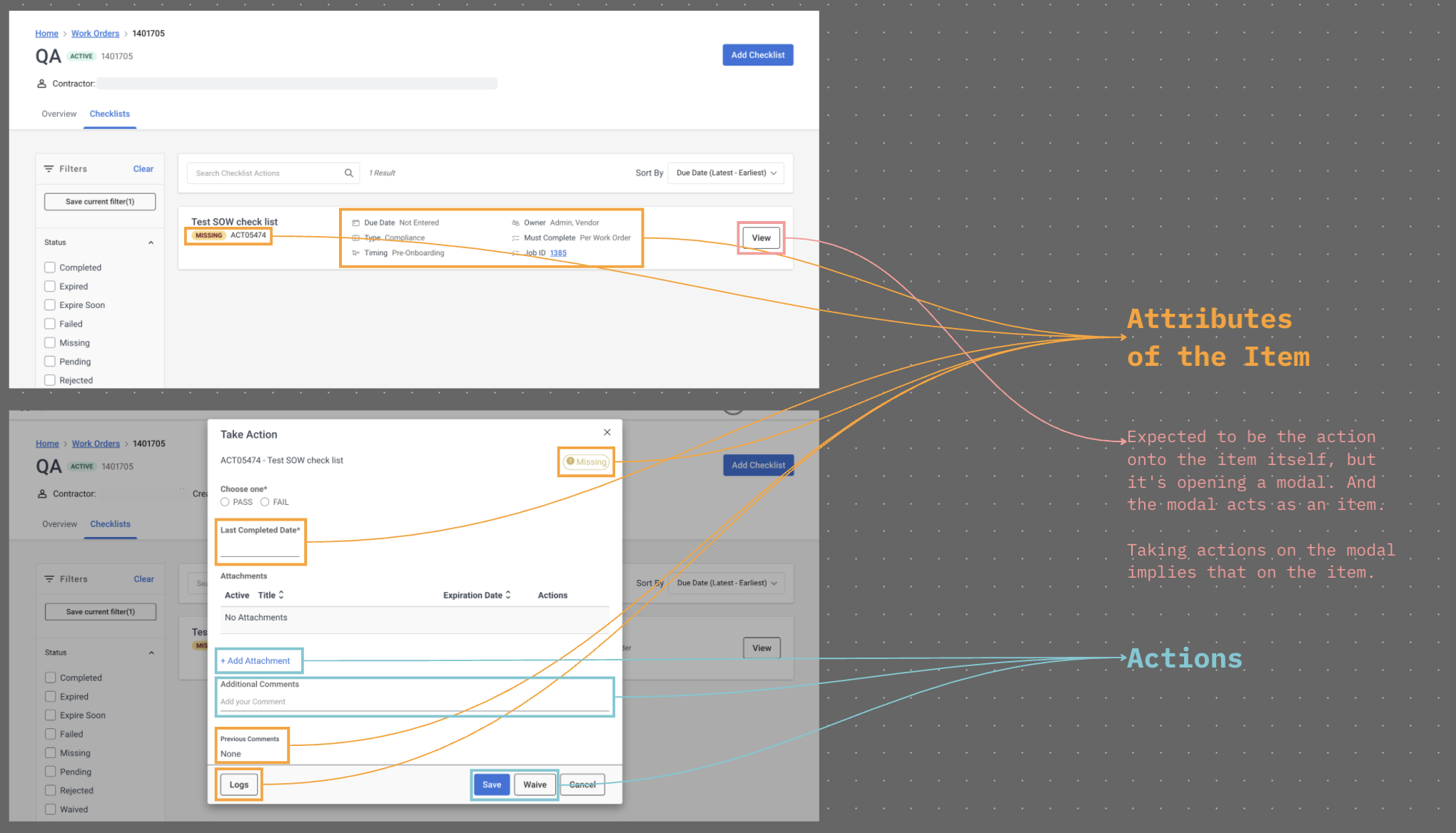 I introduced a more structured information & interaction architecture that met the user's mental model about completing checklist items. The new pattern was validated to improve user navigation by 23% and able to handle extensive customization use cases.